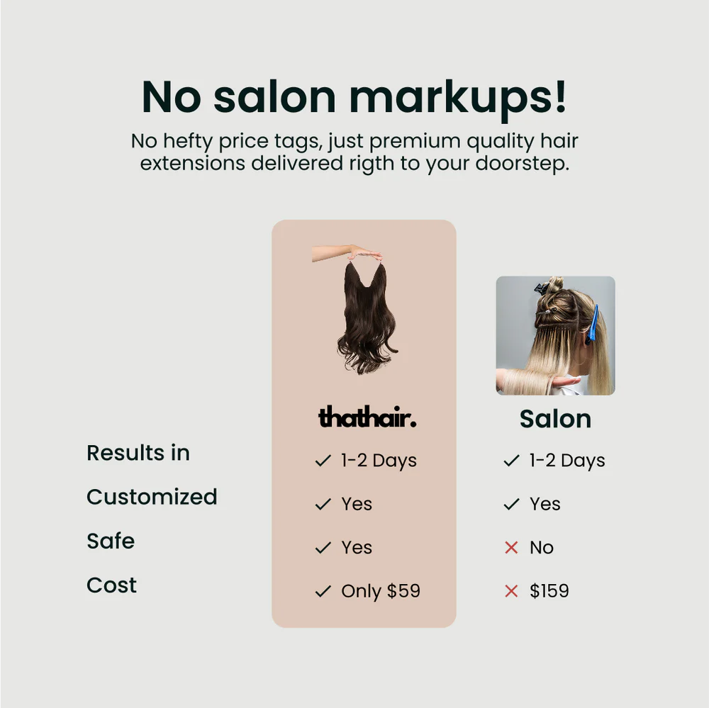 Not at all. Our ThatHair Halo is 100% damage-free. No clips, glue, or heat required. It simply sits comfortably on your head, protecting your natural hair while enhancing it. Unlike salon extensions, there’s no pulling, tugging, or strain on your roots. Just volume and length, minus the damage.